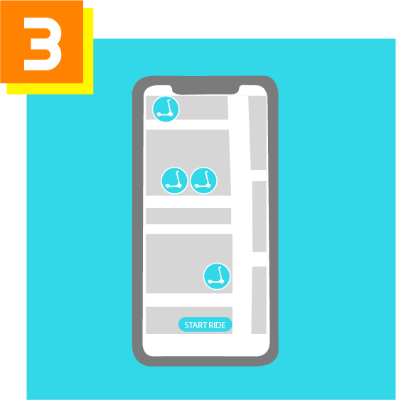 Using the map in the Scooter Ding Ding app, look for a scooter near you! Or visit one of the scooter rental/parking locations to find an available scooter. Select “START RIDE.”