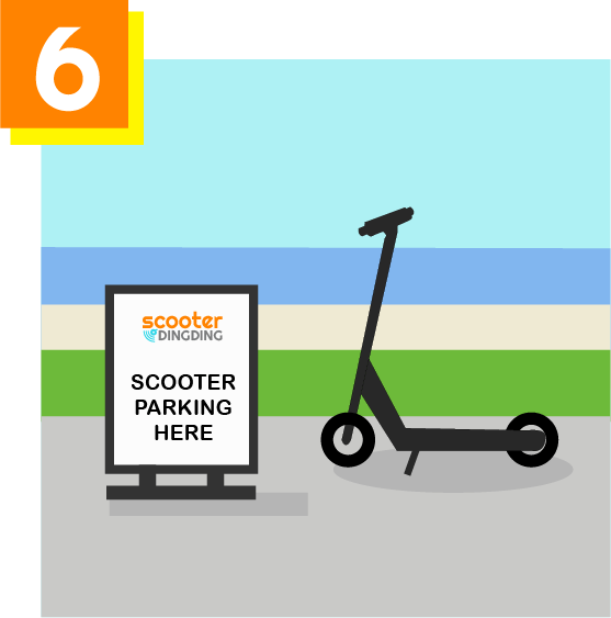 When you have completed your ride, use the kickstand to keep the scooter upright. You must park scooter at a Scooter Ding Ding designated parking location in order to end your ride.